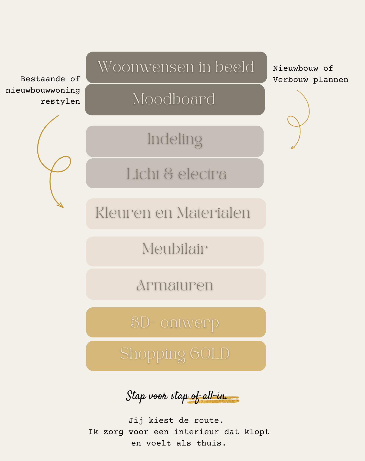 Ik begeleid je stap voor stap, gebaseerd op mijn werkwijze als interieurontwerper.