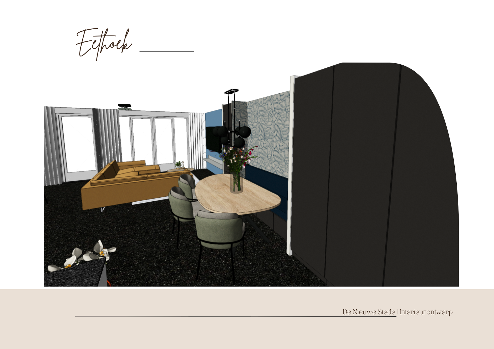 In het ontwerp stond de wens centraal om een gezellige en praktische indeling te creëren, waarbij zowel de eethoek als de zithoek voldoende ruimte bieden voor het gezin en hun gasten. De open ruimte van de woning nodigt uit tot gezamenlijke momenten, van het dineren aan de eettafel tot het samen ontspannen in de zithoek, met een goed glas wijn in de hand.