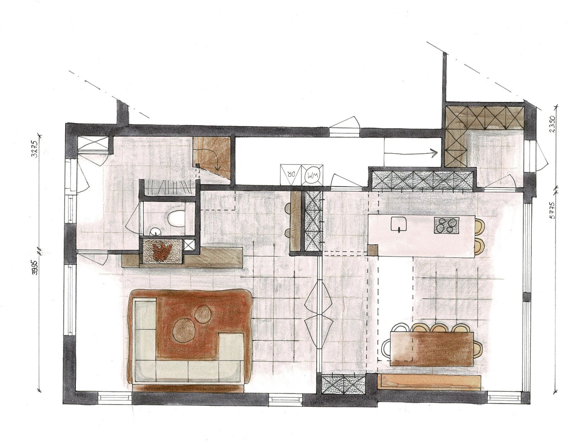 Bij binnenkomst keek je direct tegen een open garderobe aan. Niet ideaal. Ik draaide de garderobe en toiletruimte om, zodat de kapstok uit het zicht valt en je direct rust ervaart bij binnenkomst. De looproute naar het toilet is nu logischer en prettiger vanuit de woonkamer.