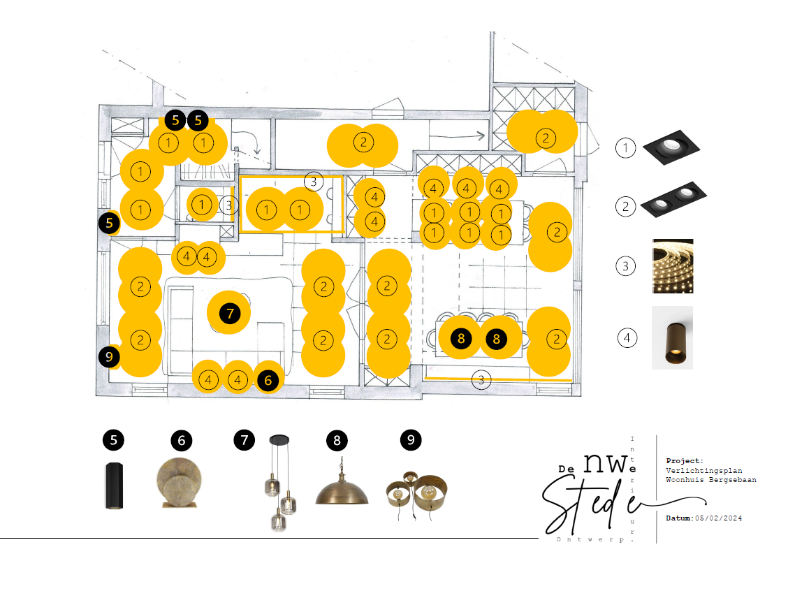 Om het plan compleet te maken werkte ik een lichtplan uit, waarbij basis-, werk- en sfeerverlichting perfect op elkaar zijn afgestemd. Zo klopt het hele plaatje – van indeling tot beleving.